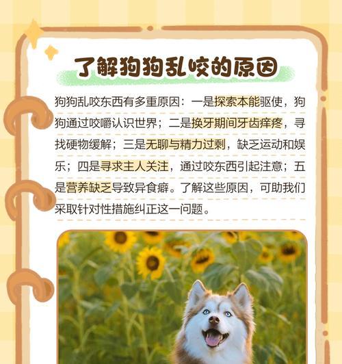 小狗是人们常常养的宠物之一,可是很多养狗人士都会遇到一个困扰,那就是小狗在家经常乱咬东西。这种行为不仅给主人带来困扰和损失,而且会危及小狗的生命安全。如何有效地预防小狗的乱咬行为呢?下面,就请看本文介绍的宠物训练技巧。