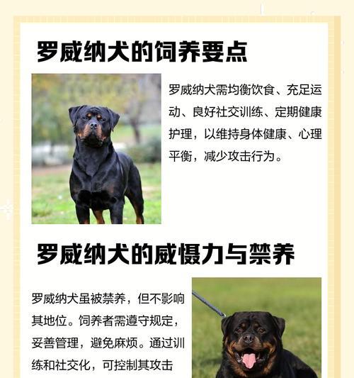 作为宠物,狗狗们给我们带来了无尽的欢乐和陪伴。但是,有时我们需要让我们的罗威纳犬变得更凶一些,以保护我们和我们的家人。在这篇文章中,我们将会介绍如何提高罗威纳犬的攻击性,以便让他们成为更好的守卫者。