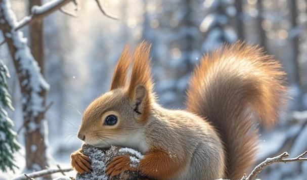 松鼠是一种非常普遍的小型哺乳动物,在冬季来临之前,它们会大量储存食物,以备不时之需。松鼠会找一个安全的地方进入冬眠状态,大幅度减缓新陈代谢,耗能量降到最低,从而在整个冬天里都不怕冷。